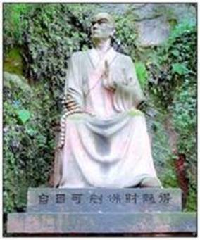 海通是贵州人,结茅于凌云山中。古代的乐山三江汇流之处,岷江、青衣江、大渡河三江汇聚凌云山麓,水势相当的凶猛,舟辑至此往往被颠覆。每当夏汛,江水直捣山壁,常常造成船毁人亡的悲剧。海通和尚见此立志凭崖开凿弥勒佛大像,欲仰仗无边法力,“易暴浪为安流”,减杀水势,永镇风涛。于是,海通禅师遍行大江南北、江淮两湖一带募化钱财,开凿大佛。佛像动工后,地方官前来索贿营造经费,海通严词拒绝道“自目可剜,佛财难得”,地方官仗势欺人,反而说:“尝试将来”。海通从容“自抉其目,捧盘致之”,“吏因大惊,奔走祈悔”。海通这种专诚忘身之行,激励众心,克诚其志。
