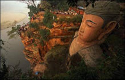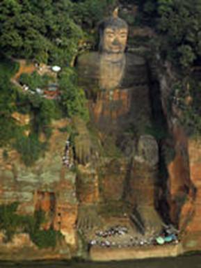 发源于川北大雪山的岷江,进入成都平原,来到乐山城下,已经是一条水面开阔的大江了。在这里,同波涛汹涌的大渡河,水流湍急的青衣江汇合。世界上最高的弥勒石刻大佛——乐山凌云大佛,位于凌云山上三江汇合得地方。